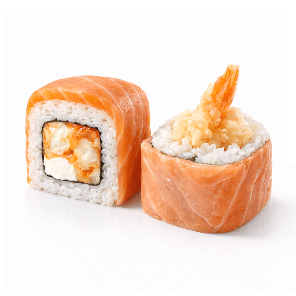 Сливочный сыр, Креветки Темпура, Кимчи соус,Лосось