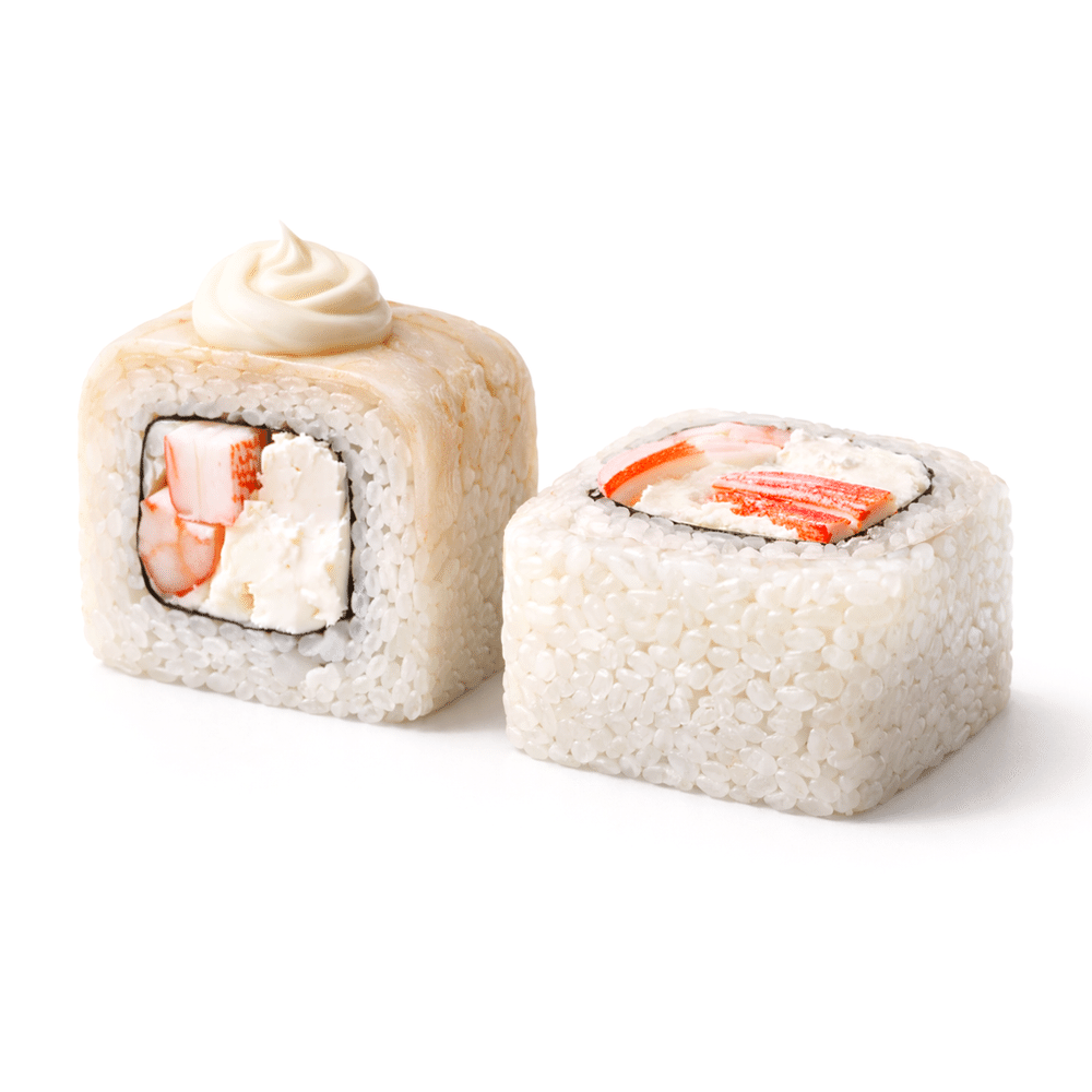 Сыр сливочный, креветки, сурими, соус чесночный