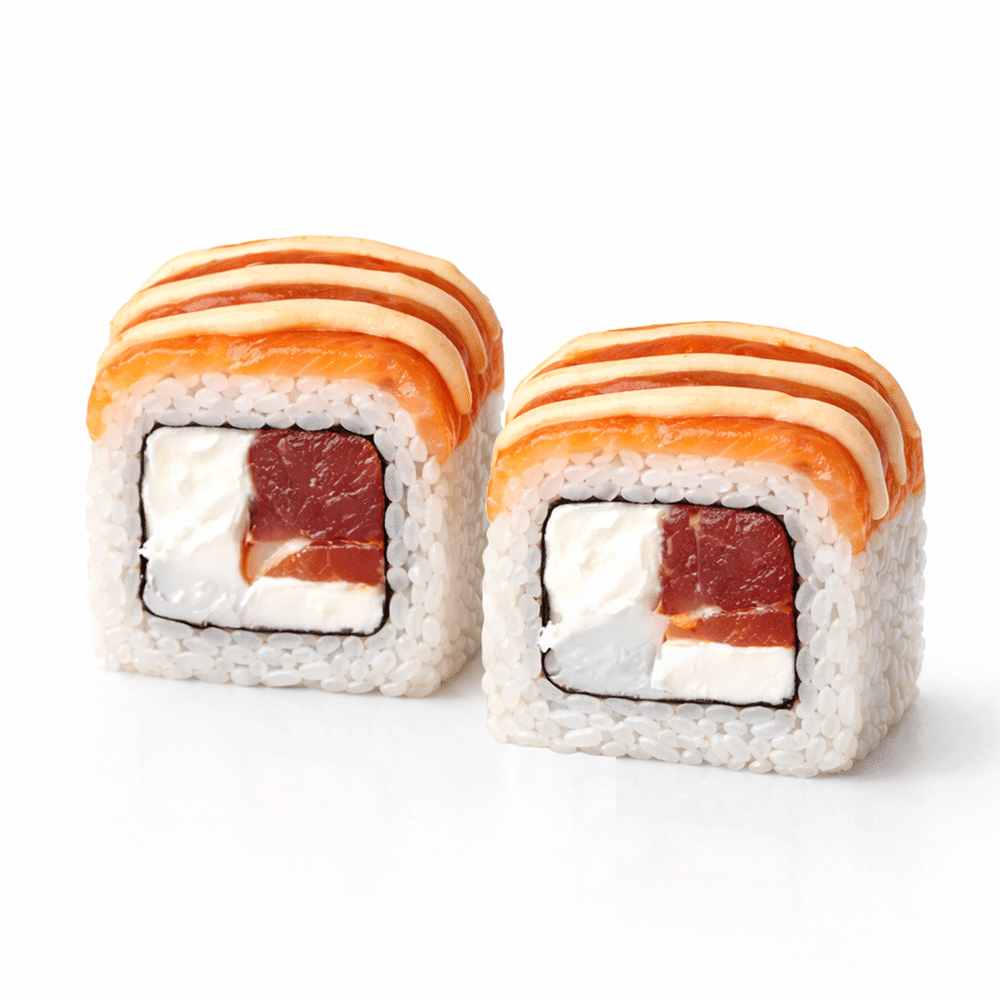 Сыр сливочный, сурими, тунец, лосось, соус спайси