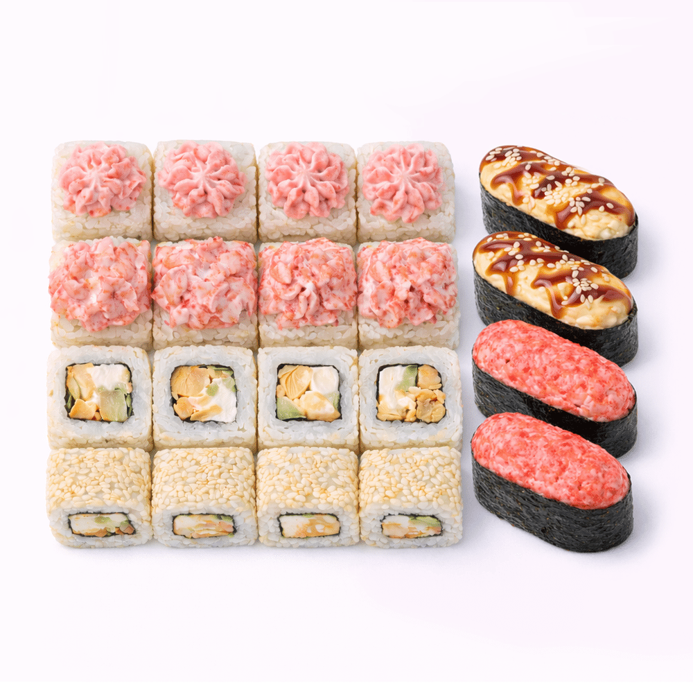 Гунканы с лососем терияке, гунканы с кревектами, Лава, Чито